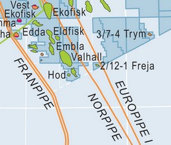 Valhall og Ekofisk områdene med reservoarer. Utsnitt av kart fra Oljedirektoratet