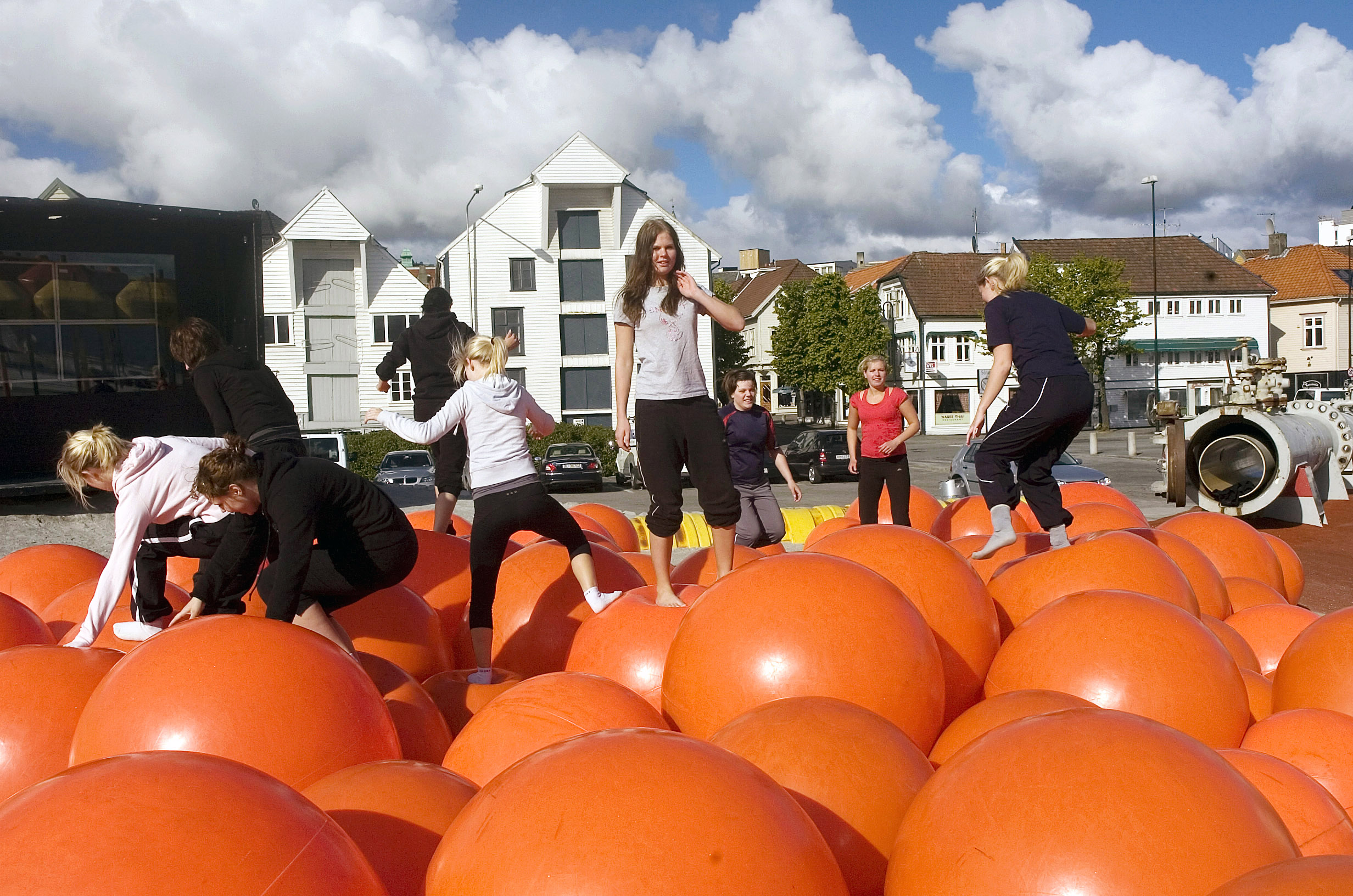 The Geopark is a playground built up with components from the oil industry and designed to resemble a footprint of the Troll reservoir formation in the North Sea.
